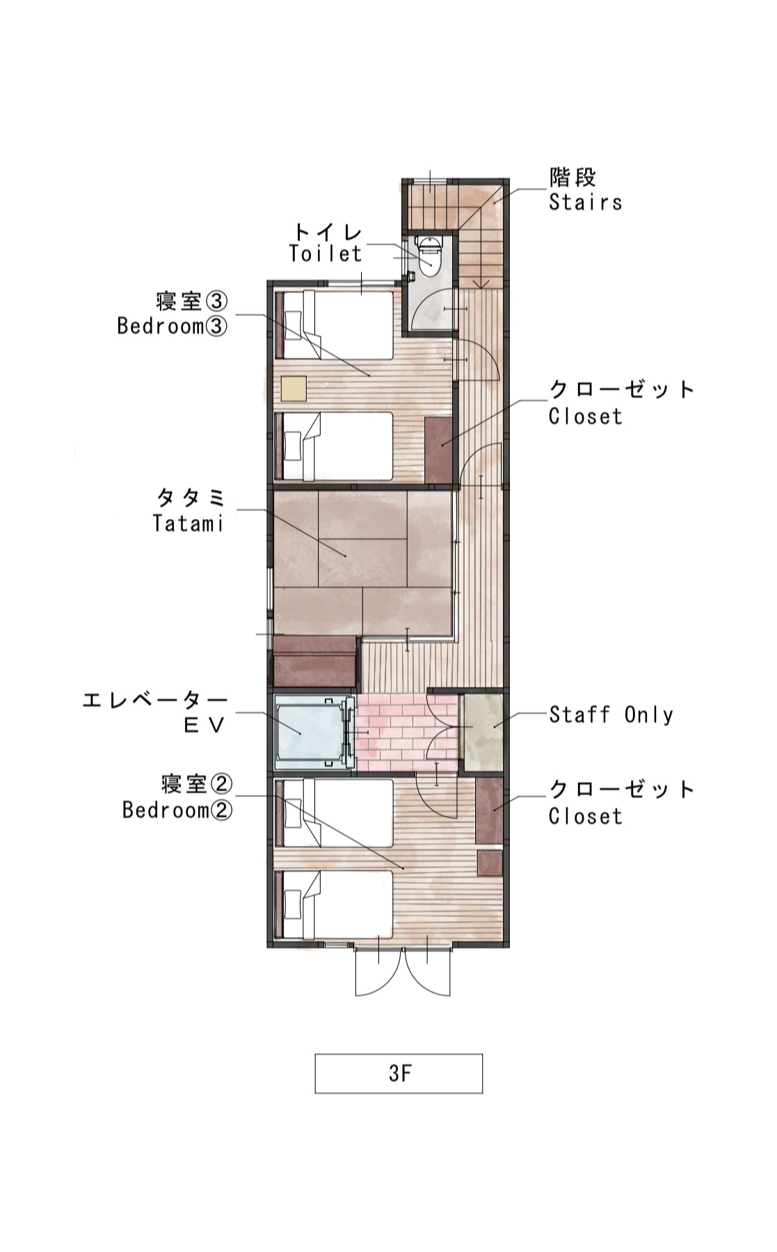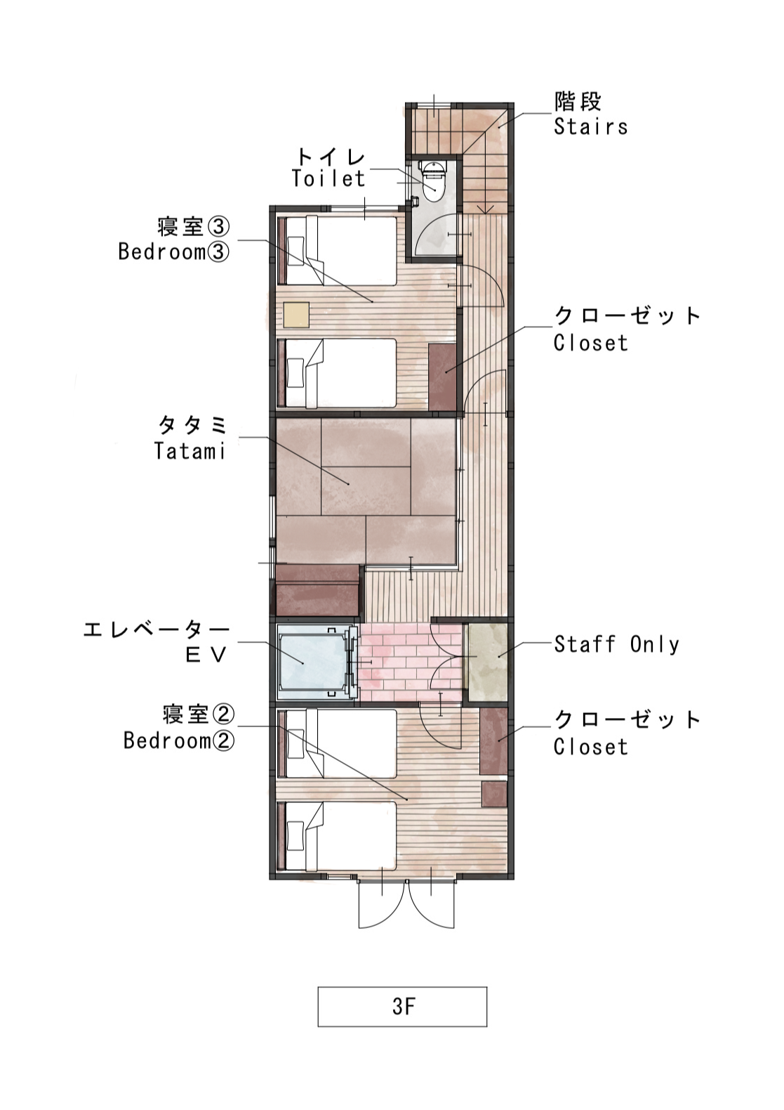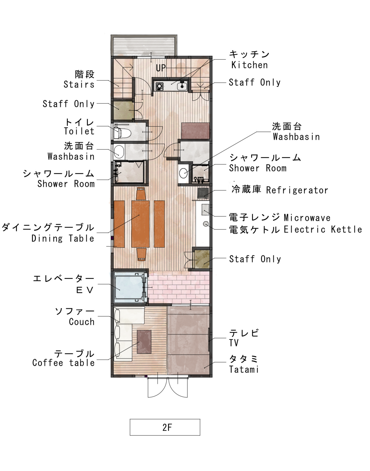 建物は和風と洋風を融合させた建物で、京都を感じつつ、いつもの生活スタイルでくつろいでいただけるそんなお宿です。
