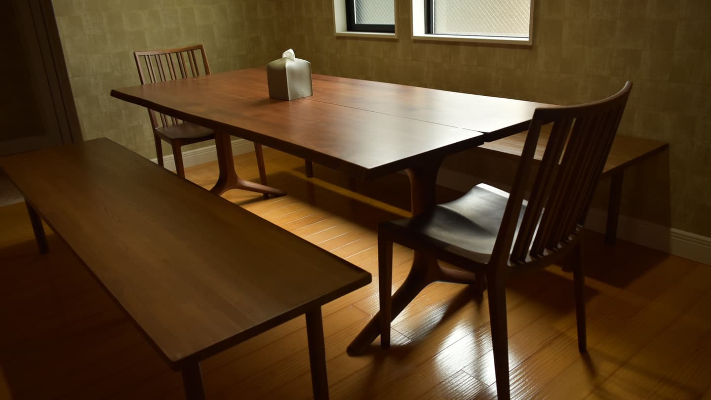 2階ダイニングには、大きなテーブルとベンチを設置。皆で集まって、ゆっくりと腰掛けながらグループの時間を楽しんでいただけます。