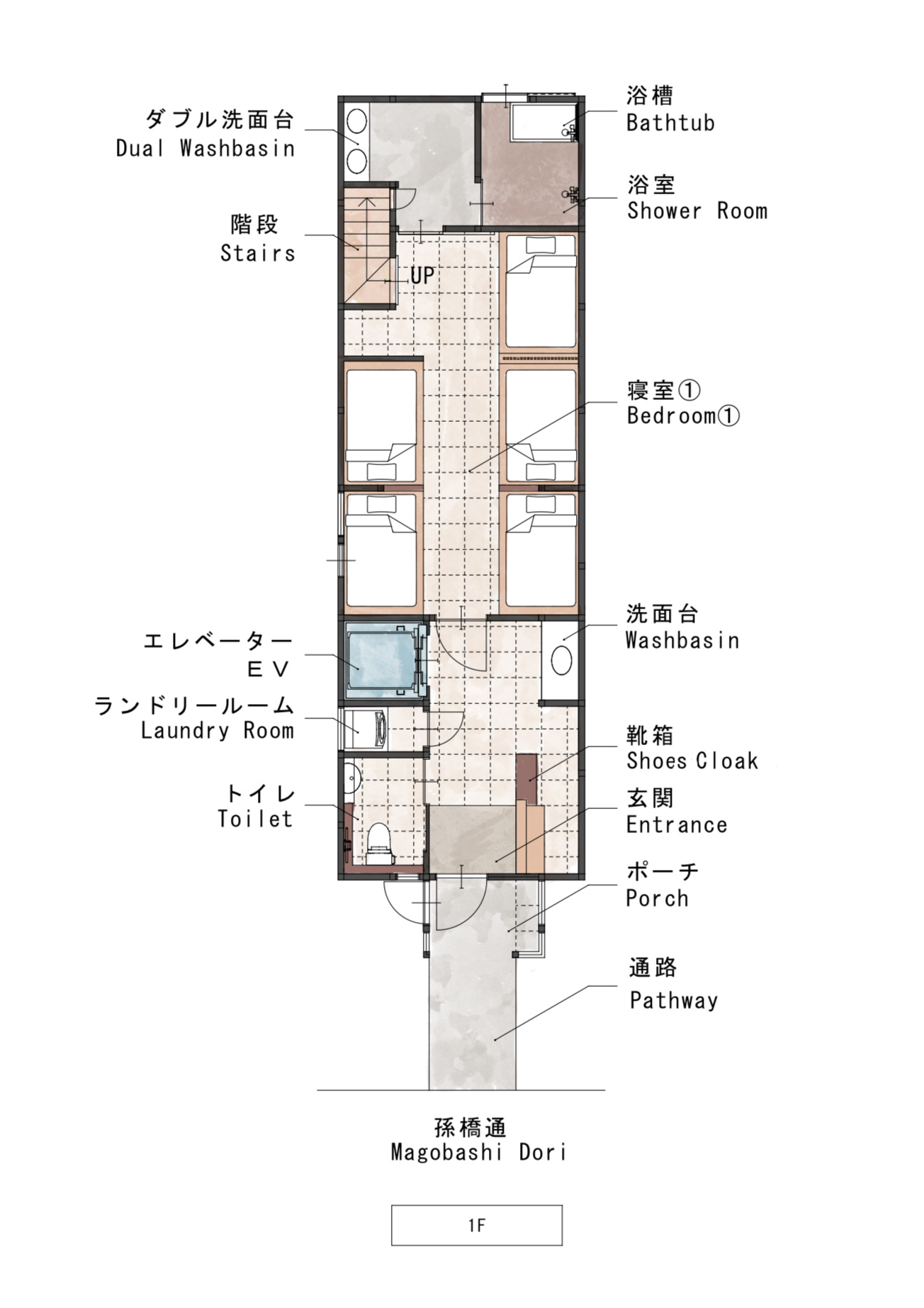 1階にはランドリー室があり、洗濯機と乾燥機を自由にご利用いただけます。洗濯洗剤もご用意しておりますので、長期滞在やご家族での旅行にも便利です。
