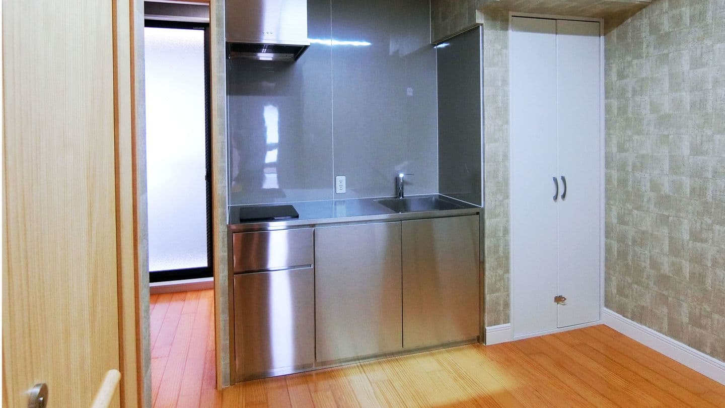 キッチンには基本的な調理器具と、安心してお使いいただけるIHコンロをご用意しています。